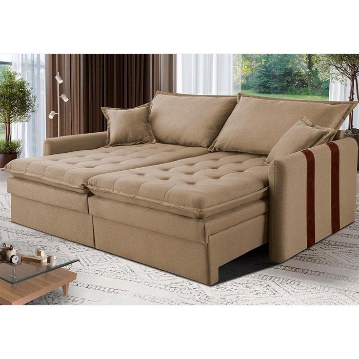 Sofá Baú Sem Caixa 2,00m Retrátil Bonnie Linho Bege Escuro – Praticidade e Modernidade para seu ambiente!