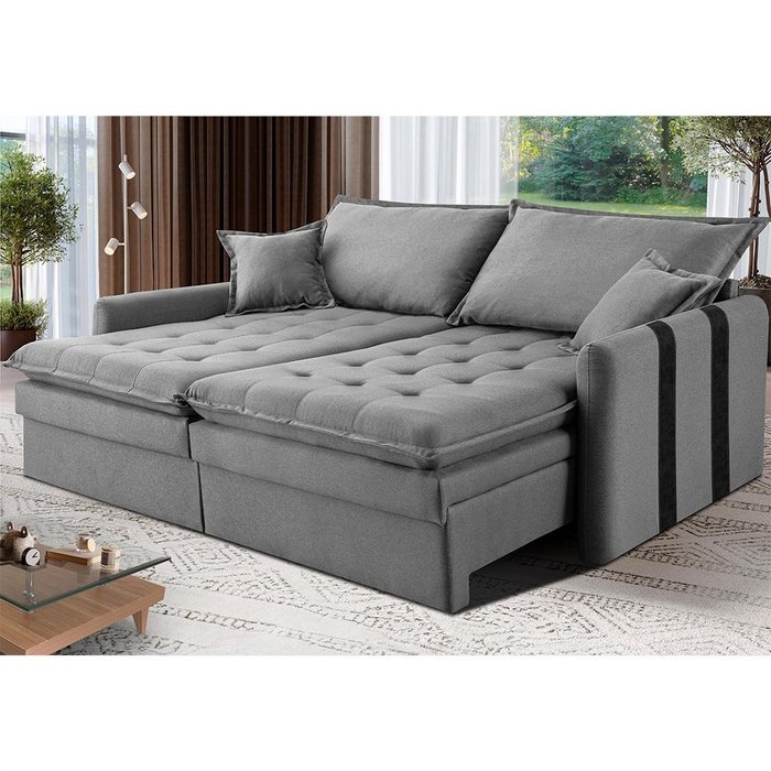 Sofá Baú Sem Caixa 2,00m Retrátil Bonnie Linho Cinza Claro – Praticidade e Modernidade para seu ambiente!