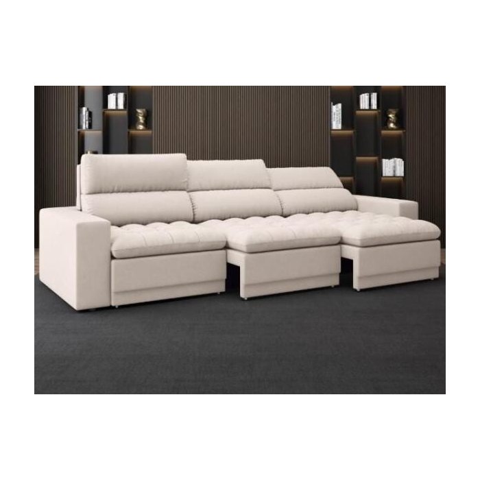Sofá Bellagio 2,85M Assento Retrátil e Reclinável Velosuede Areia - NetSofás