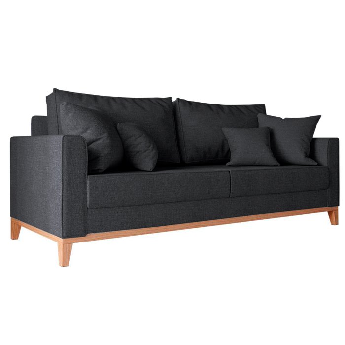 Sofá Beny 3 Lugares Com Base de Madeira - Linho Grafite
