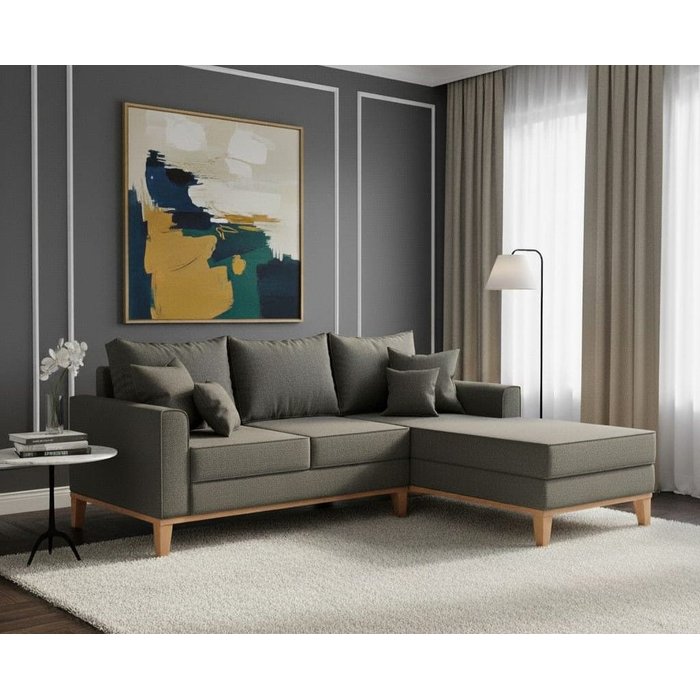 Sofá Beny com Chaise Direita, 2,00x1,40m, 3 Lugares, Linho, Base em Madeira. Grafite