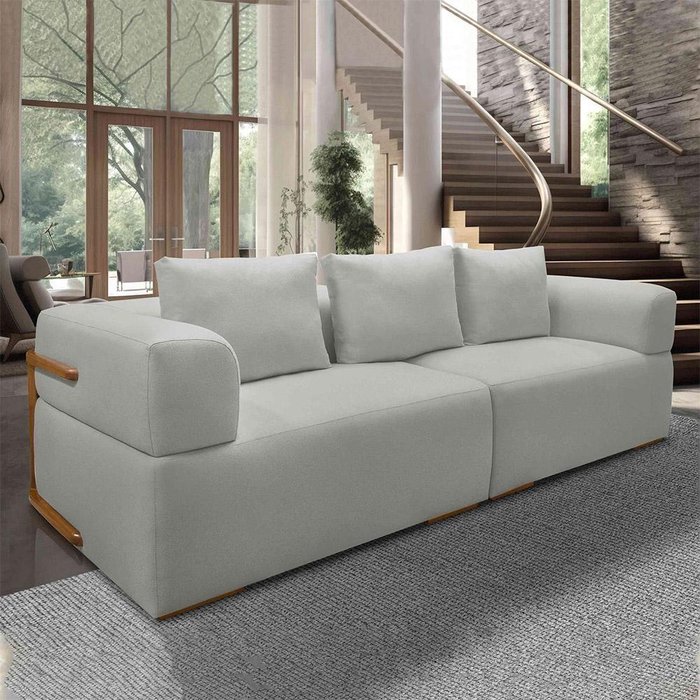 Sofá Bipartido 5 Lugares Com Almofadas Soltas 300cm Nuuk Linho Cinza G63 - Gran Belo