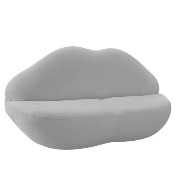 Sofá Boca em Tecido Suede Cinza Claro Cinza