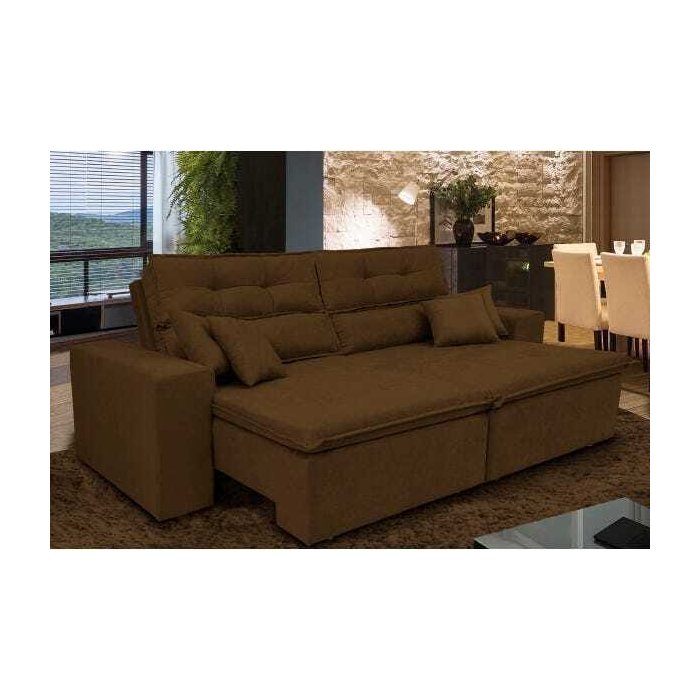 Sofá Cairo 2.02M Retrátil e Reclinável com Molas e Pillow No Assento Tecido Suede Café