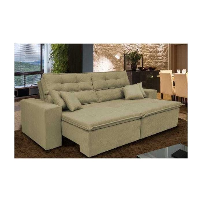 Sofá Cairo 2,52M Retrátil e Reclinável com Molas e Pillow No Assento Tecido Suede