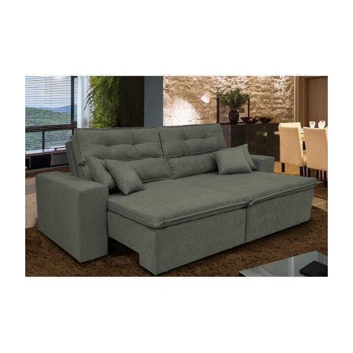 Sofá Cairo 2.92M Retrátil e Reclinável com Molas No Assento e 4 Almofadas Tecido Suede