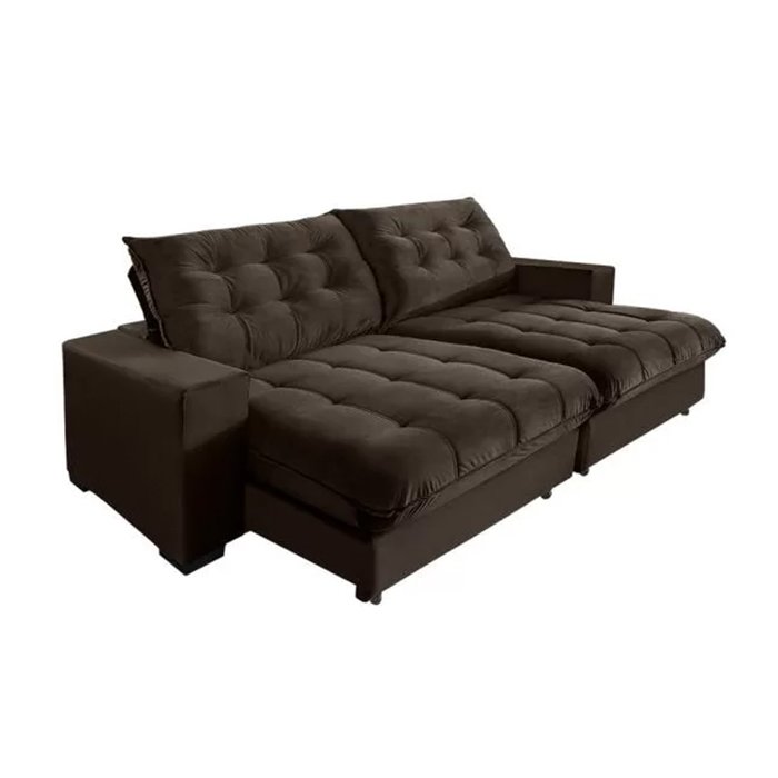 Sofá Califórnia Retrátil e Reclinável 5 Lugares 2,50m com Molas Ensacadas e Pillow Marrom