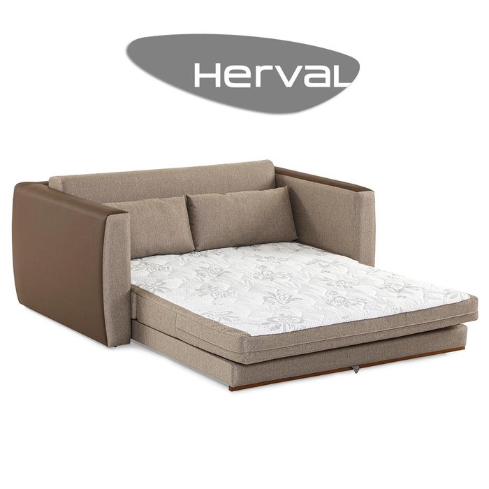 Sofá-Cama 2 Lugares Herval Star, Linho Marrom e Marrom Escuro Marrom