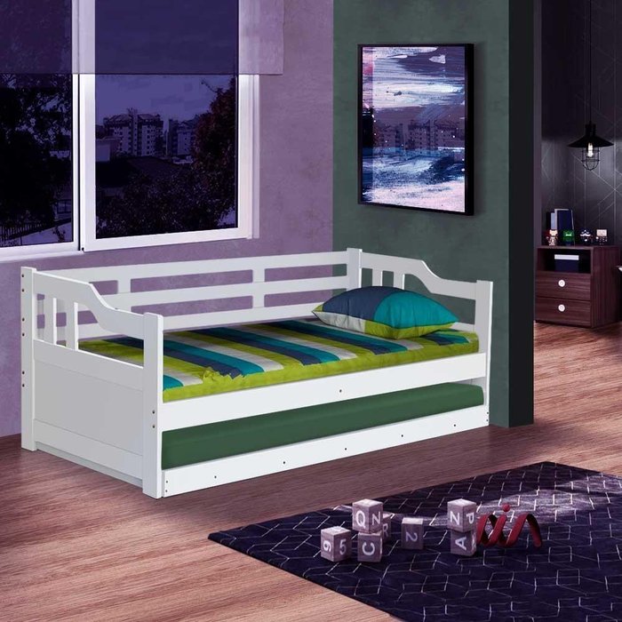 Sofá Cama 2 Lugares Solteiro Madeira Maciça Branco Benjamim Shop Jm