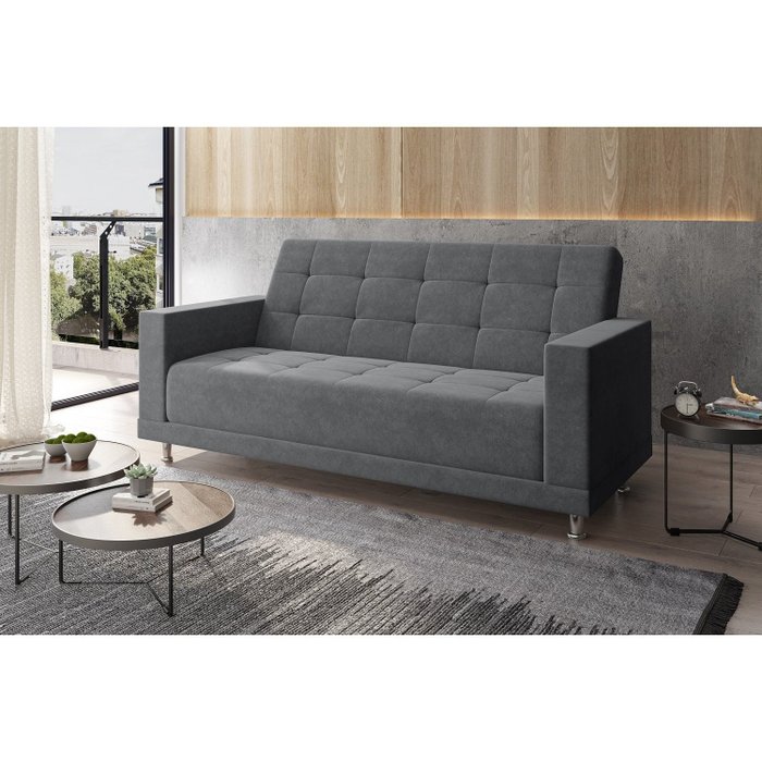 Sofá Cama 218cm 3 Lugares Mônaco Sofá Monaco Suede Cinza