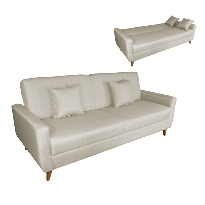 Sofá Cama 3 Lugares Agata Linho Bege Reclinável - Larbelle