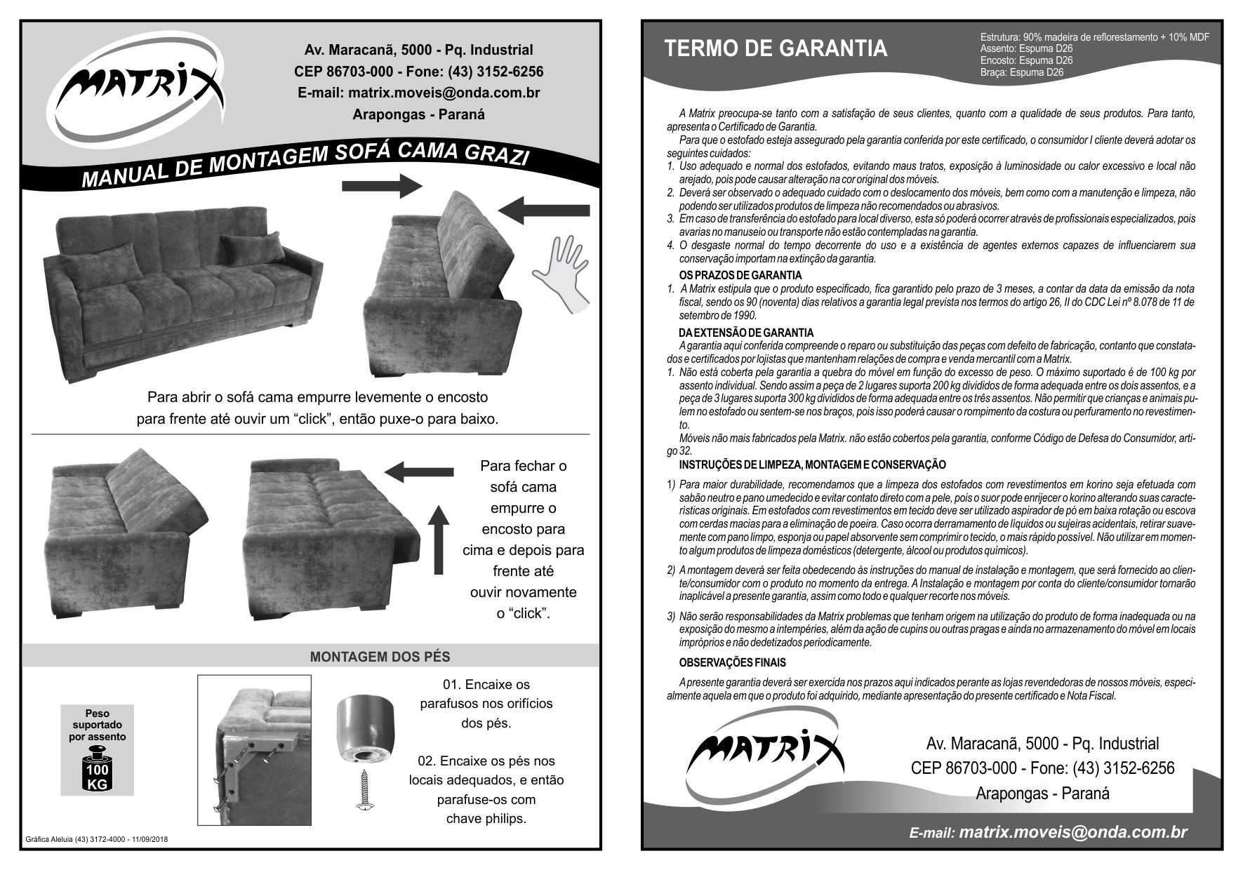 | Itens Inclusos | 1 Sofá Cama, 5 pés, 1 Manual de Instruções e 1 Certificado de Garantia |