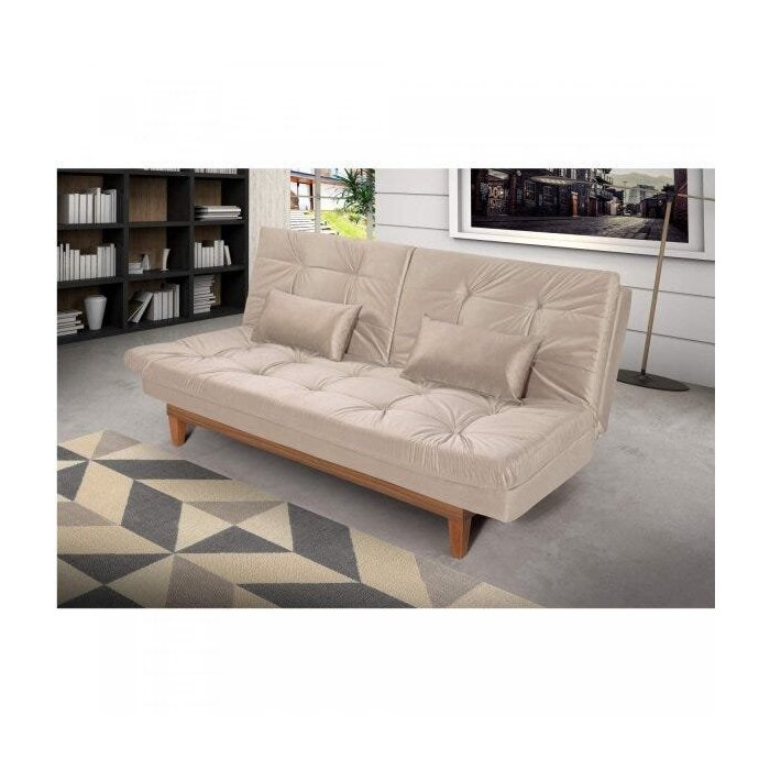 Sofá Cama 3 Lugares Pratic Madeira Espresso Móveis Areia