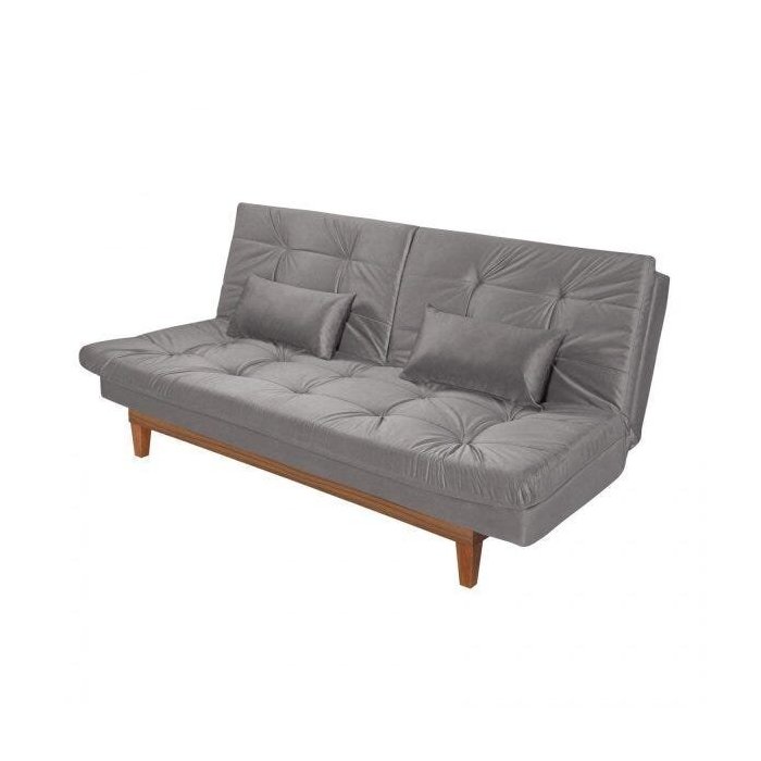 Sofá Cama 3 Lugares Pratic Madeira Espresso Móveis Cinza