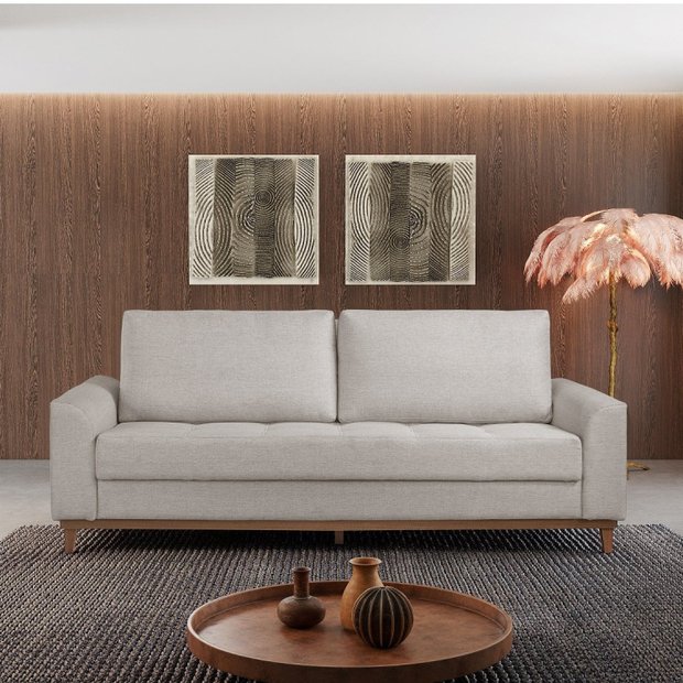 Sofá Cama 3 Lugares Retrátil 2,24m Linho Pés de Madeira Bege