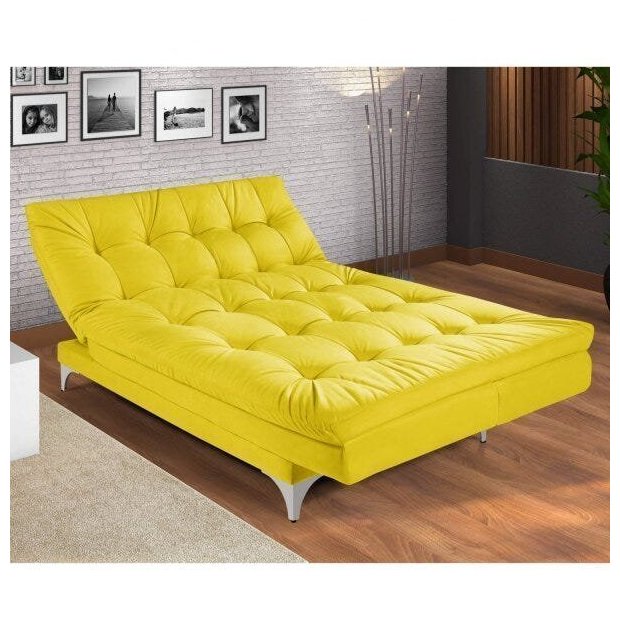 Este Sofá Cama Versátil Acomoda Tranquilamente 3 Pessoas Sentadas e 2 Deitadas, pode ser usado com até 5 posições diferentes, pés de alumínio, espumas de alto conforto com percintas elástica e molas bonel, estrutura em madeira pinus de reflorestamento, acompanha 2 almofadas que podem ser usada como travesseiro, mecanismo da catraca em aço. Sommelier de Sofás Confira nosso vídeo no link: https://youtu.be/q4Pd7bfEz4M