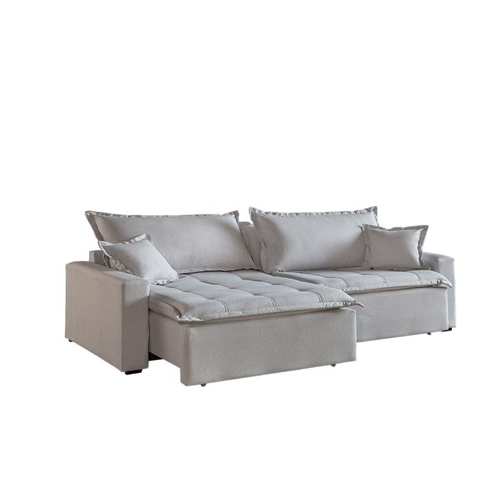 Sofá Cama 4 Lugares Retrátil e Reclinável Belize 2.40m Linho Creme Mundial Estofados