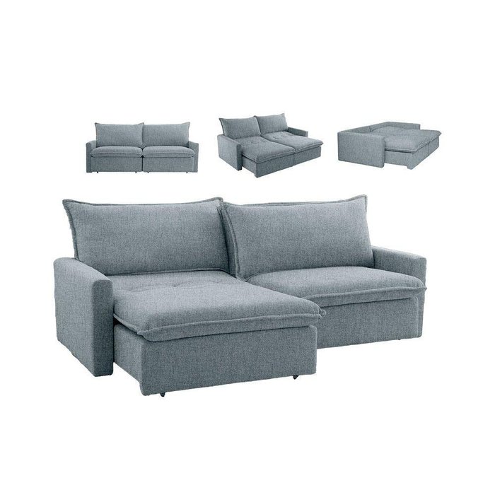 Sofá Cama Califórnia Com Espuma D28 Tecido Em Linho Zarat Cinza