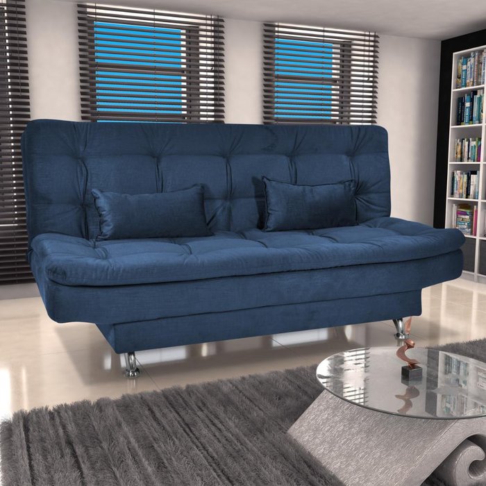 Sofá Cama Casal 2 lugares Reclinável Salomé - Azul veloart