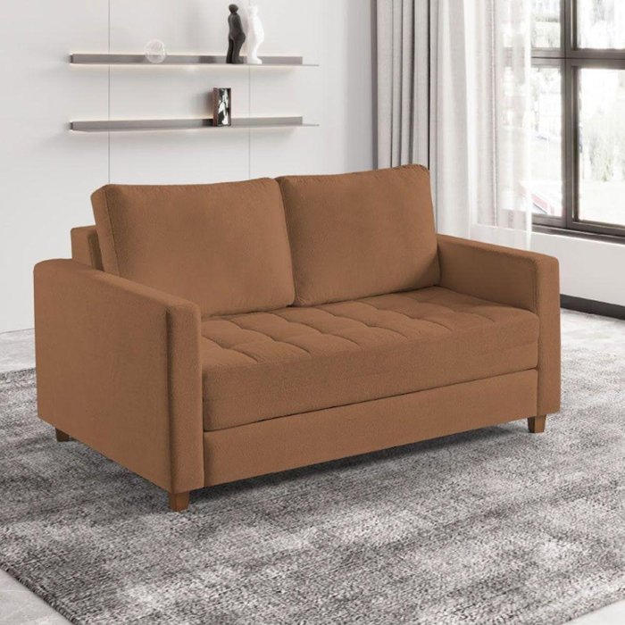 Sofá Cama Casal Marcelle 2 Lugares Em Bouclé Talento Móveis Laranja
