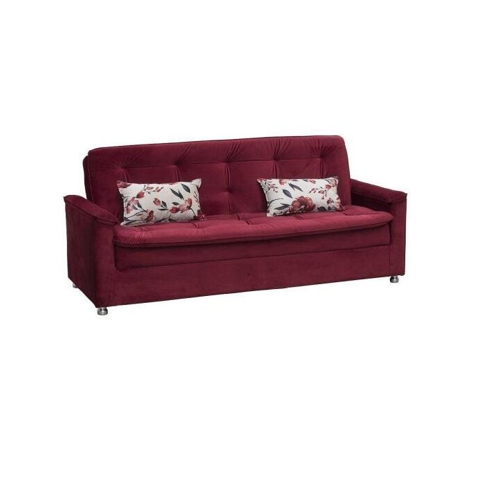 Sofá Cama Casal Reclinável Nanda - Veludo Vinho Almofada 420