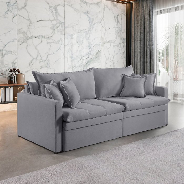 Sofá Cama com Baú 180cm Ravena Sistema Retrátil Cinza