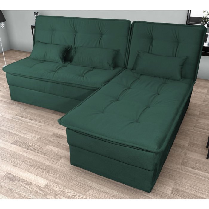 Sofá Cama com Chaise 2 Lugares Reclinável Dafne Matrix Verde