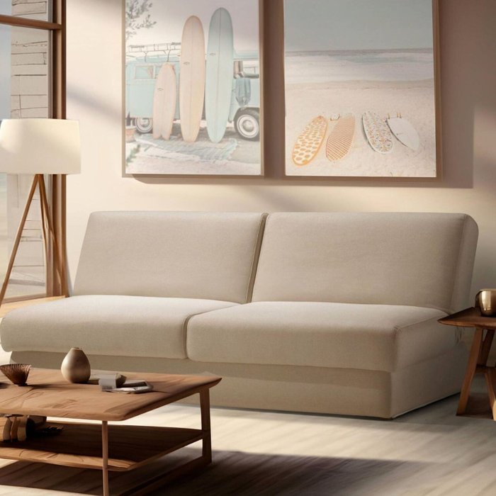 Sofá Cama Easy 3 lugares 208cm com Baú e tecido Linho Bege 1429 Bege