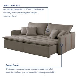 É um sofá para sala de estar grande? Sim, fica perfeito em diversos tamanhos de sala.