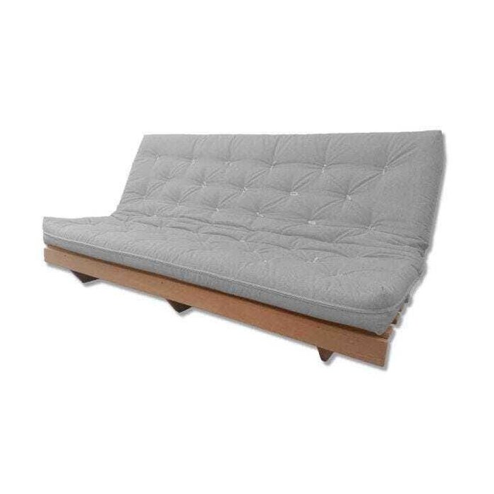 Material e estrutura: O colchão futon casal é fabricado em tecido de alta qualidade em Acquablock importado, seu enchimento é de mantas de algodão natural, manta de fibra siliconada estruturado por espuma ortopédica D28, possui amarras nas extremidades, para melhor fixação do futon. A estrutura é produzida em madeira nobre maciça de grápia, com pintura natural.