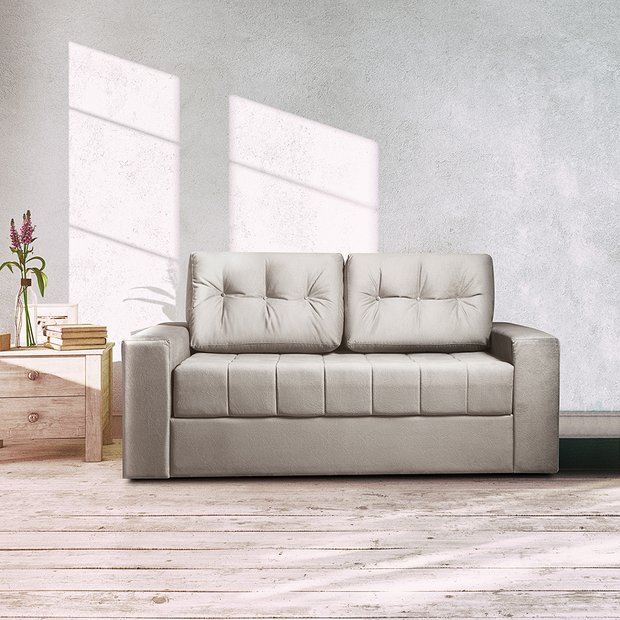 Sofá Cama Murilo Casal 182cm Tecido Linho Bege