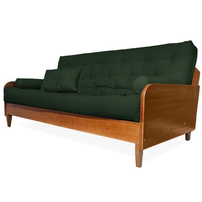 Sofá Cama Paris Ii Sarja em Madeira Maciça Cor Natural - Verde Militar