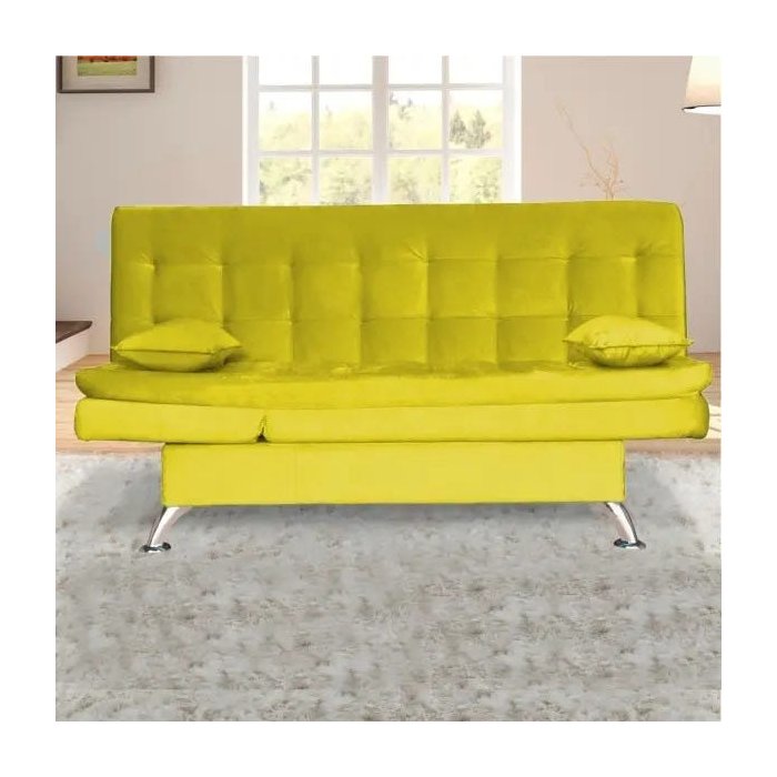 Sofa Cama com Pés Cromados e Almofadas Lugano Suede Amarelo B162