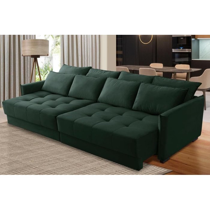 Sofá Cama Retrátil e Reclinável 2,10m com Molas Cairo Veludo Verde Mirra Decor