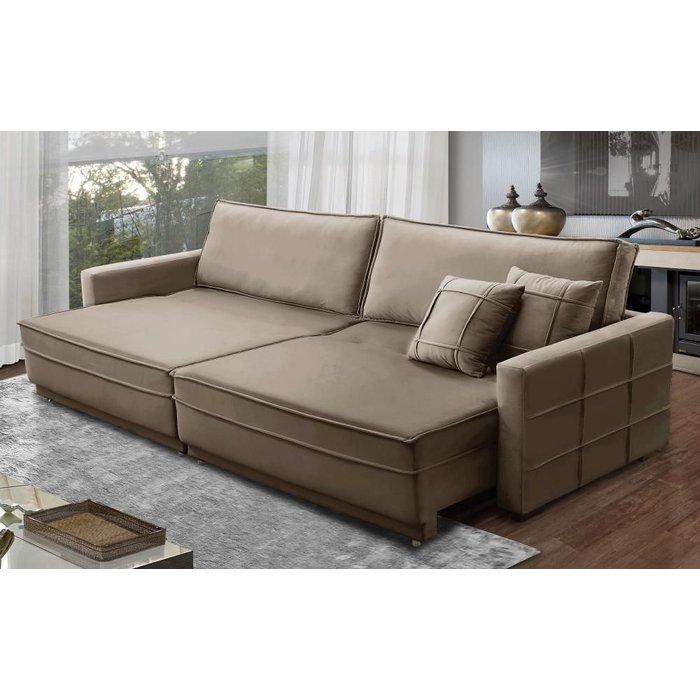 A combinação perfeita de beleza, praticidade e conforto.O novo Sofá cama Cancún é perifeito para ter em casa, com um design modermo ele vai agregar alto valor ao seu ambiente, deixando-o muito mais bonito, elegante além de proporcionar um conforto surreal.A opção dele virar cama é perfeita para quando precisar acomodar algum amigo ou parente quado vierem te visitar. Medidas do Produto Montado:- Largura: 2,10m- Altura: 1,00m- Profundidade: 1,00m- Profundidade de Assento: 0,45cm- Largura de Assento: 1,95m- Braço: 0,10cm- Profundidade total aberto: 1,35m- Profundidade de Assento (Cama): 1,20m- Chão ao Assento: 0,47cm Especificações Técnicas:Encosto: Composto de Almofadas preenchidas de 80% fibra e 20% flocos, para proporcionar maciez e qualidade.Assento: Composto de espuma D-28 além de possuir Molas Bonel e percintas elásticas de 5mm que são esticadas por uma máquina que garante a melhor qualidade possível para o conforto e durabilidade.Estrutura: Sua estrutura é composta por madeira de eucalipto 100% reflorestada, ela é fixada por grampos galvanizados que vão fazer todo o trabalho de manter uma estrutura firme com alta qualidade e durabilidade. Informações relevantes:- Esse produto suporta de 130 a 150kg por assento. *Este produto vai embalado em 2 Volumes. Garantia 90 dias após o recebimento do produto. Instruções de limpeza: Utilizar um pano limpo e seco. Não limpe com escovas ou produtos abrasivos.Observações importantes:- As imagens são meramente ilustrativas, não acompanham objetos de decoração e eletros;- As cores dos produtos podem sofrer alterações dependendo do seu monitor ou lote do tecido.- Todos os produtos vão embalados com total segurança;- Confira a embalagem e o poduto no ato da entrega, caso o produto esteja em desacordo recuse imediatamente.- Não nos responsabilizamos no ato de entrega por montagens, desmontagens, instalações de produtos, nem uso de guinchos ou equipamentos para acesso a pisos superiores em apartamentos.- Confira as dimensões do produto no momento da compra e certifique-se de que passará por escadas, elevadores, portas normais e corredores. Observando as orientações acima, evita-se futuros desagrados ou imprevistos com a entrega do produto.CASO TENHA, A MONTAGEM DO PRODUTO É DE RESPONSABILIDADE DO COMPRADOR, NÃO EFETUAMOS A MONTAGEM DO PRODUTO.*As transportadoras NÃO SOBEM escadas, elevadores e não adentram residências*- A entrega será feita até a porta ou portaria do endereço no qual o pedido foi feito, qualquer necessidade de movimentação do produto até o local onde ele será utilizado é de inteira responsabilidade do CLIENTE, caso haja algum dano ou qualquer coisa do tipo no produto durante a movimentação NÃO NOS RESPONSABILIZAMOS.*As transportadoras NÃO SOBEM escadas, elevadores e não adentram residências*