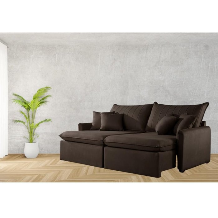 Sofá Cama Retrátil e Reclinável 200cm Madri - Movenzo Estofados Marrom