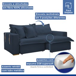 Sofá Cama Retrátil e Reclinável 240cm Arizona Com Almofadas