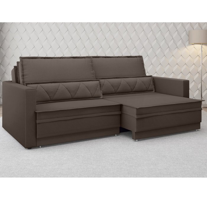 Sofá Cama Retrátil e Reclinável 240cm Velosuede Danubio Yescasa Chocolate