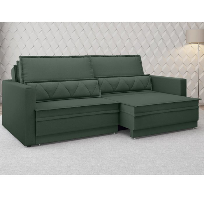 Sofá Cama Retrátil e Reclinável 240cm Velosuede Danubio Yescasa Verde