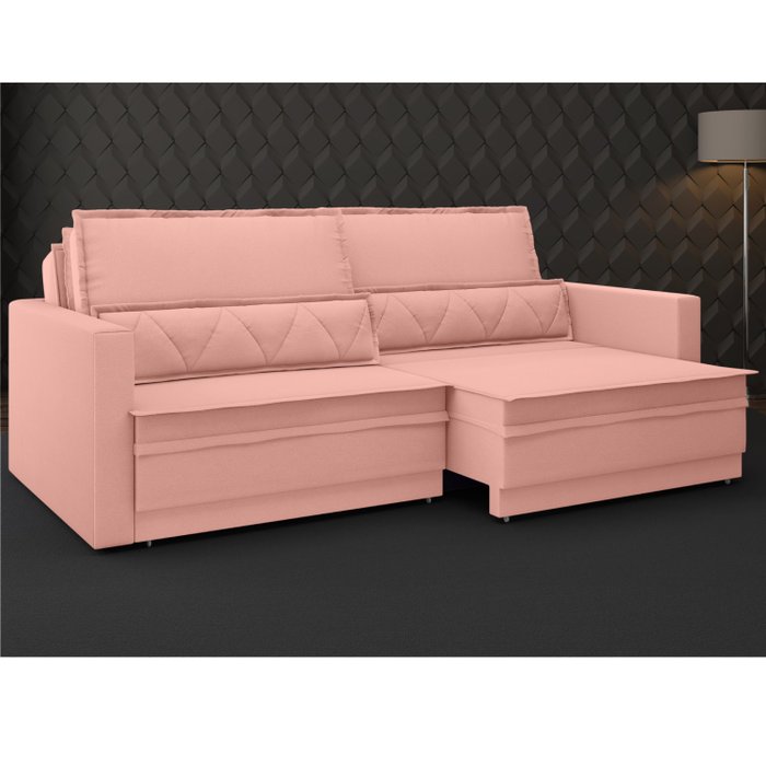 Sofá Cama Retrátil e Reclinável 260cm Velosuede Danubio Yescasa Rosê