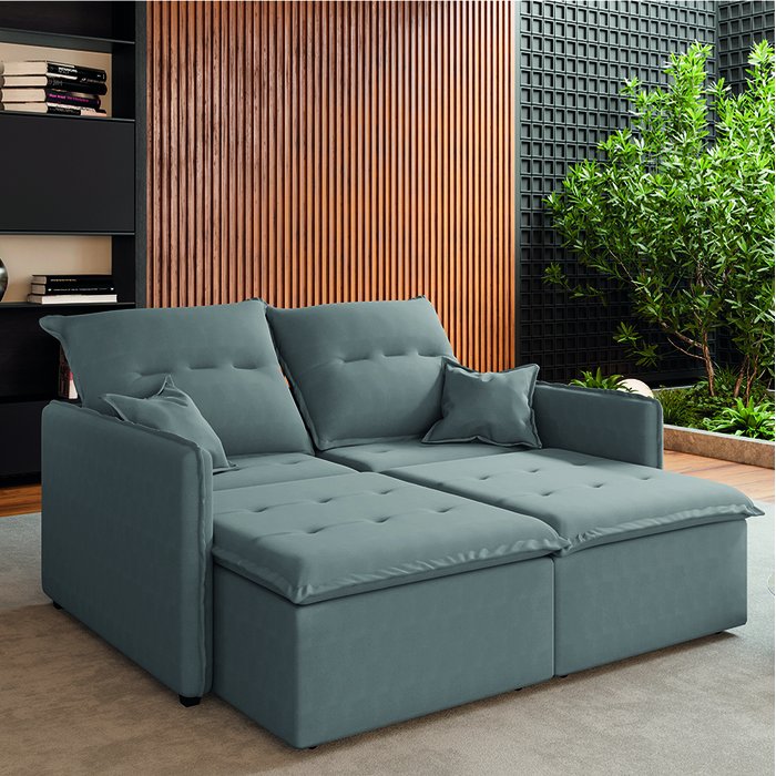 MODELO: Sofá Cama Retrátil e Reclinável 2m 3 Lugares Bipartido Com Molas Glamour Veludo Selmer