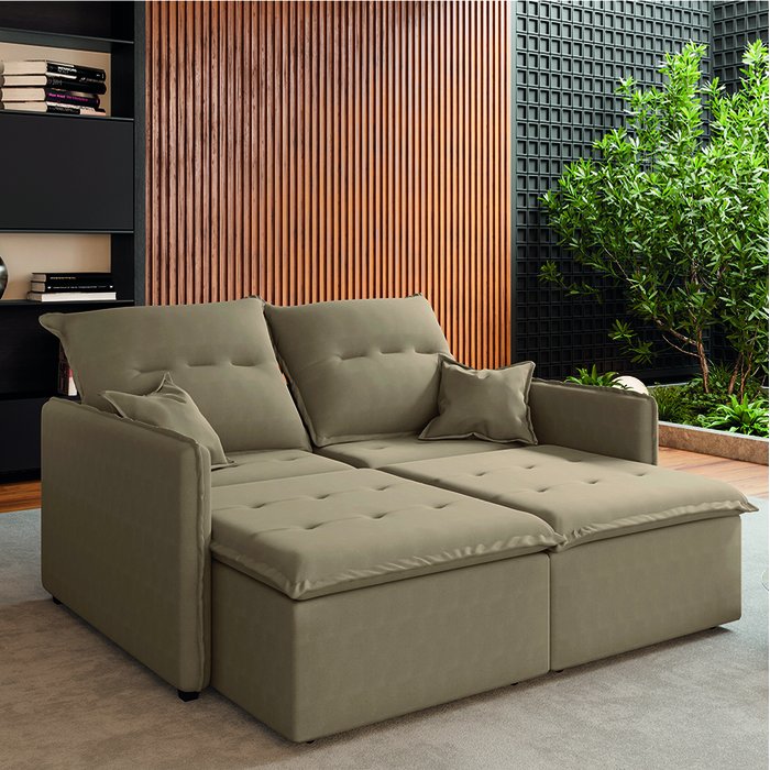 Sofá Cama Retrátil e Reclinável 2m 3 Lugares Bipartido com Molas Glamour Veludo Macchiato Selmer