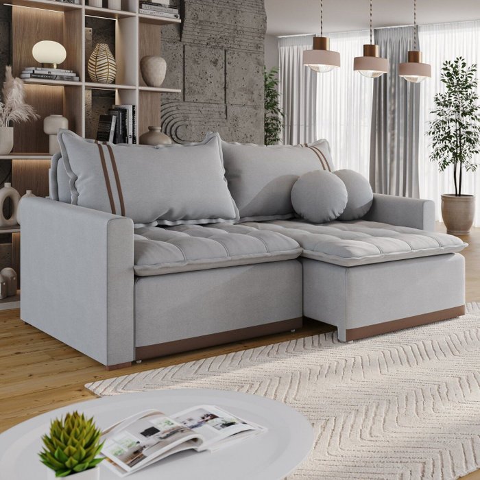 Transforme sua sala com o equilíbrio perfeito entre aconchego e elegância. Com 220cm de largura, o Sofá Flórida acolhe a rotina com encostos em fibra siliconada — macios e envolventes — e assento firme na medida certa. O revestimento em Linho adiciona textura e sofisticação, fácil de combinar com diferentes estilos de decoração. Retrátil, ele se estende para momentos de relax e, quando necessário, vira um sofá-cama amplo e confortável, ideal para receber visitas ou maratonar séries com todo mundo à vontade. Os braços quadrados de 15cm arrematam o visual contemporâneo e garantem apoio prático no dia a dia.