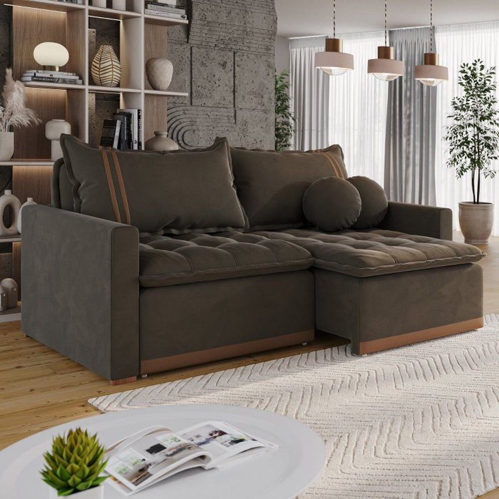 Sofá Cama Retrátil em Madeira Eucalipto e Veludo 220cm Flórida Veludo Marrom