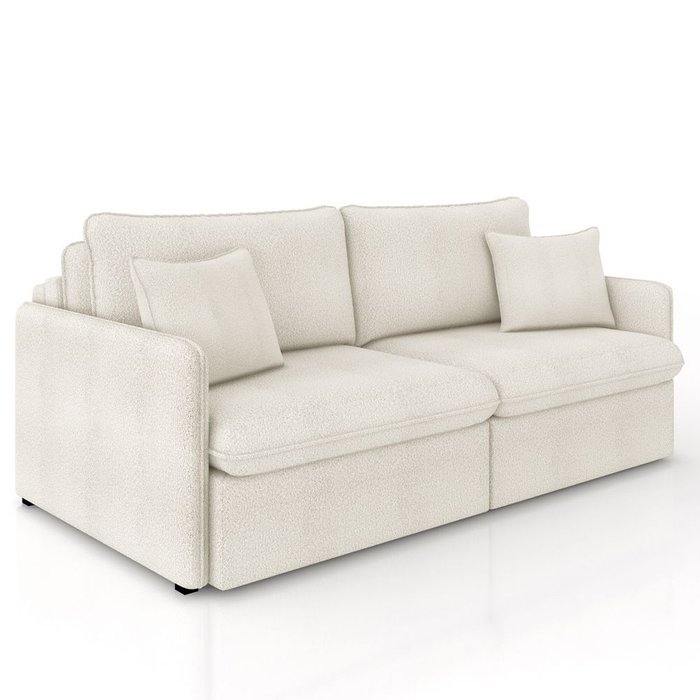 Sofá Cama Retrátil para Sala de Estar 214cm Una K01 Bouclê Creme - Lyam Decor