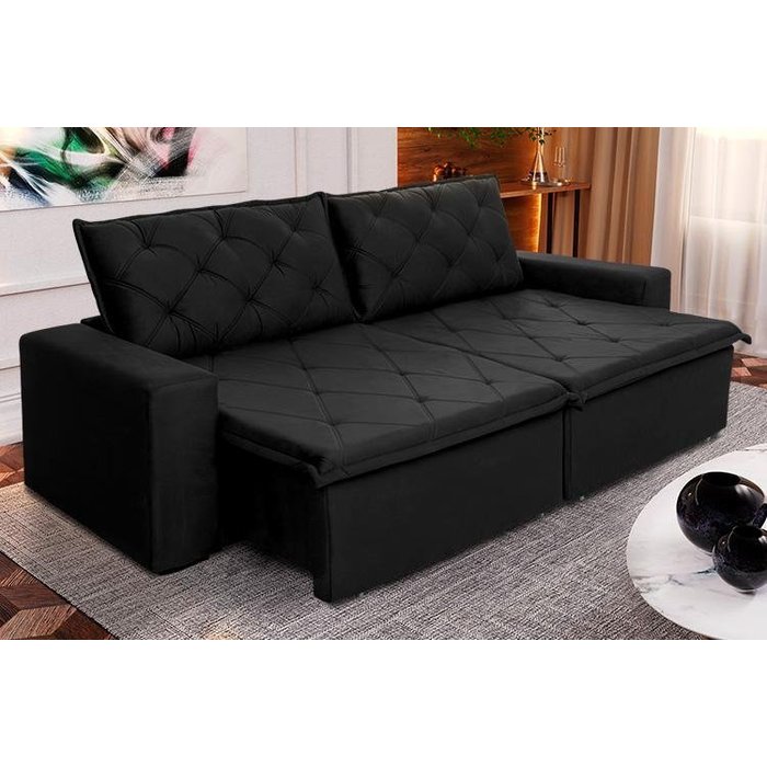 Sofá Cama Retrátil Reclinável 2,50m Bangkok Suede Velut Preto Molas no Assento - King House