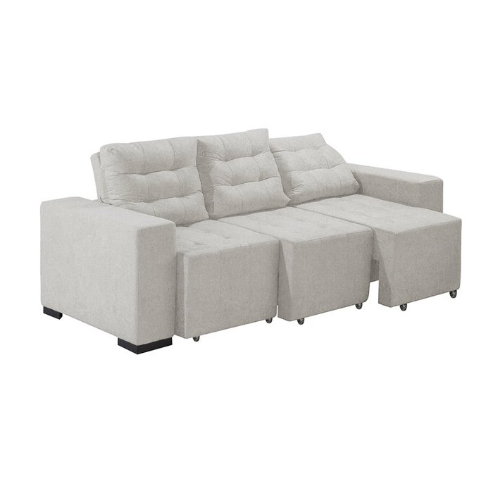 Sofá Cama Retrátil Reclinável 3 Lugares Anturio Linho Cinza - Basoto Estofados