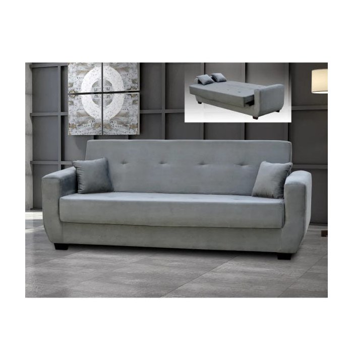 - Sofá de três lugares quando fechado e cama de casal quando aberto.