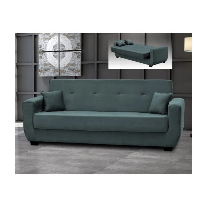 - Sofá de três lugares quando fechado e cama de casal quando aberto.