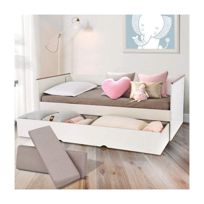 Sofá Cama Solteiro com Gaveta Angra Tebarrot Off White/Madeira